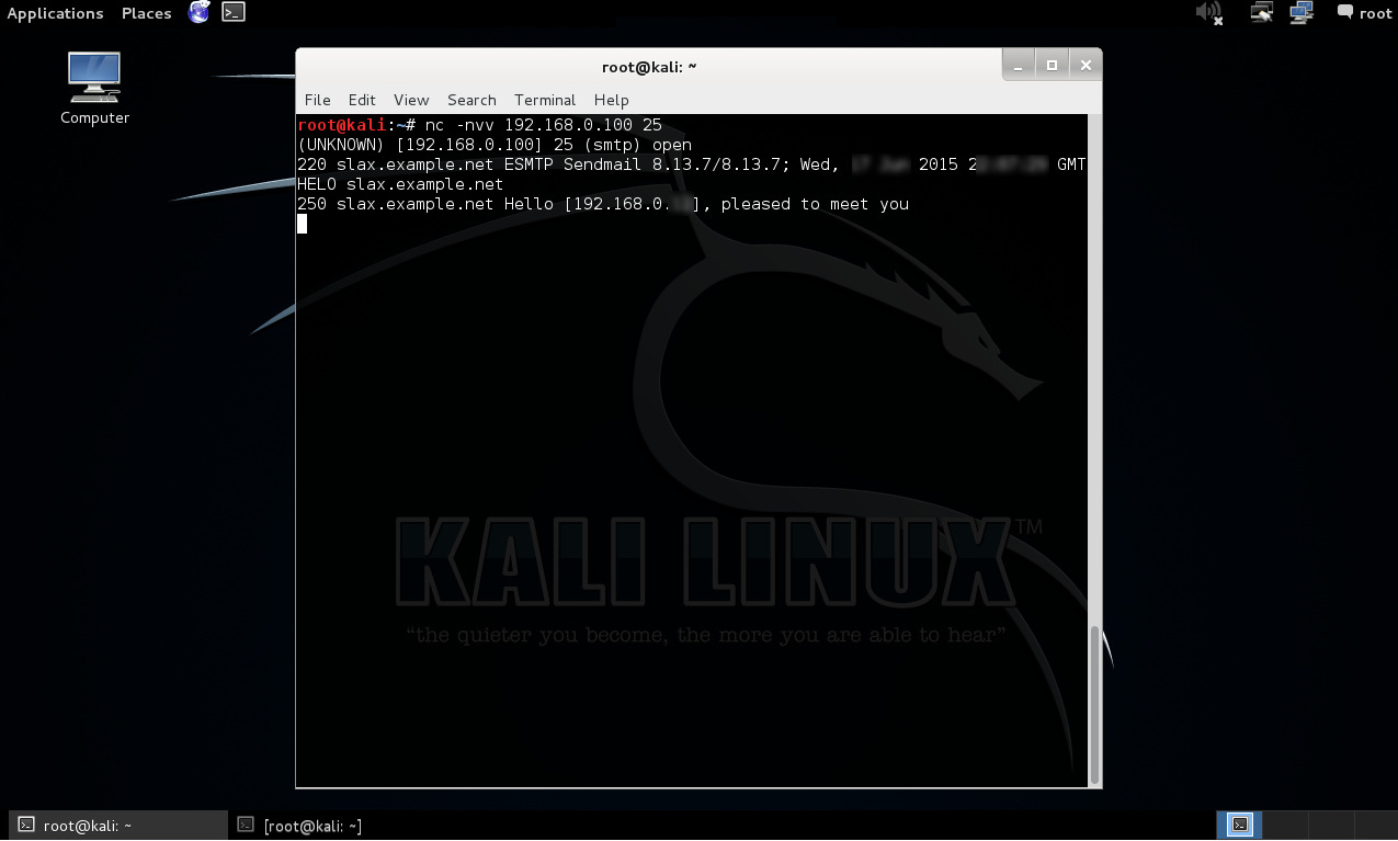 Puerto TCP/25: La respuesta recibida desde el puerto 25 utilizando netcat, expone un servicio SMTP ejecutando un Sendmail 8.13.7/8.13.7.