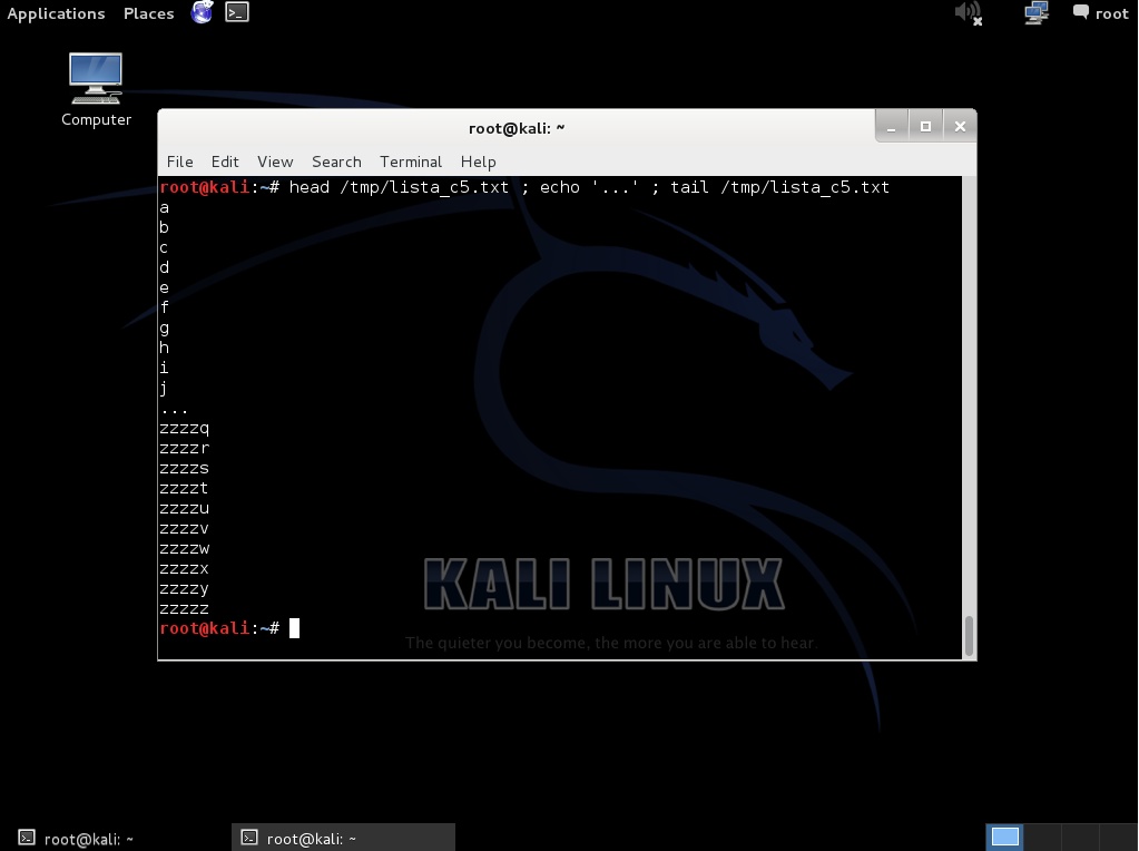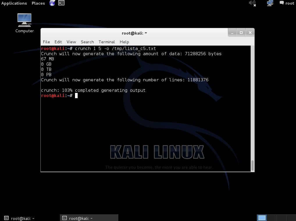# crunch 1 5 -o /tmp/lista_c5.txt