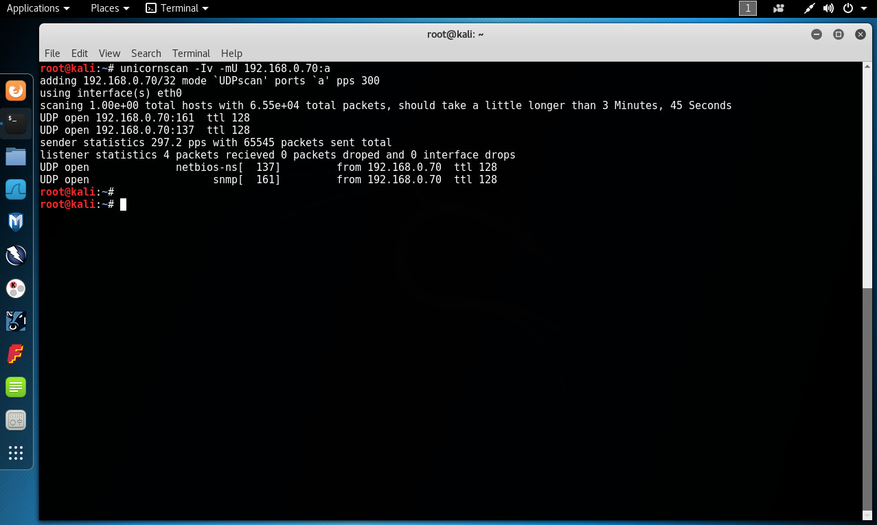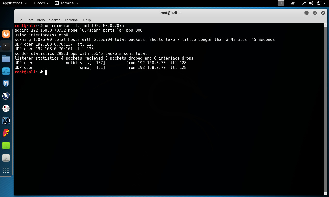# unicornscan -Iv -mU 192.168.0.70:a