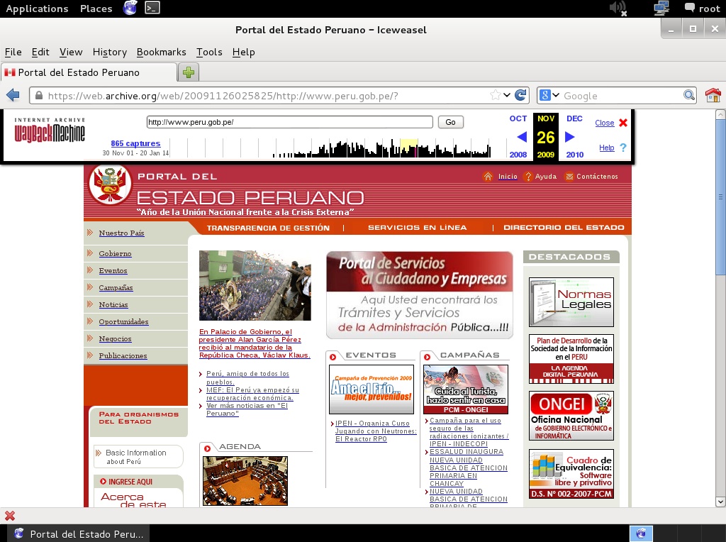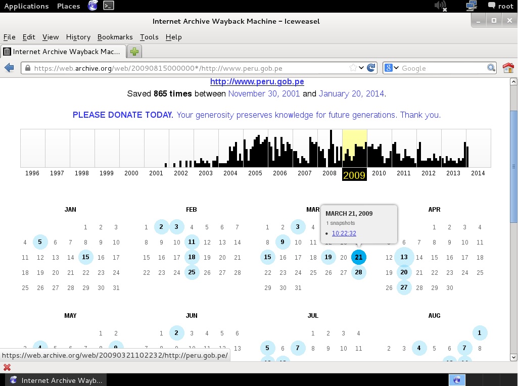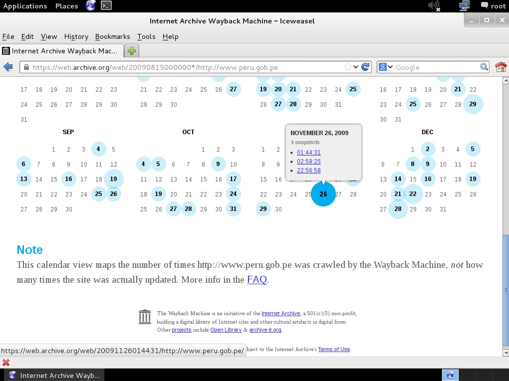 Al seleccionar algunas de las capturas. Se mostrará como era la página web en un año, mes, día, hora, minuto y segundo determinado.