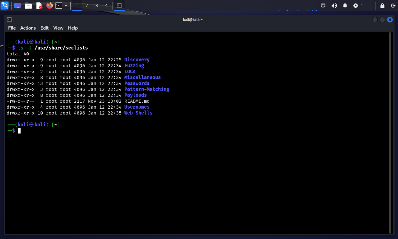 $ ls -l /usr/share/seclists/
