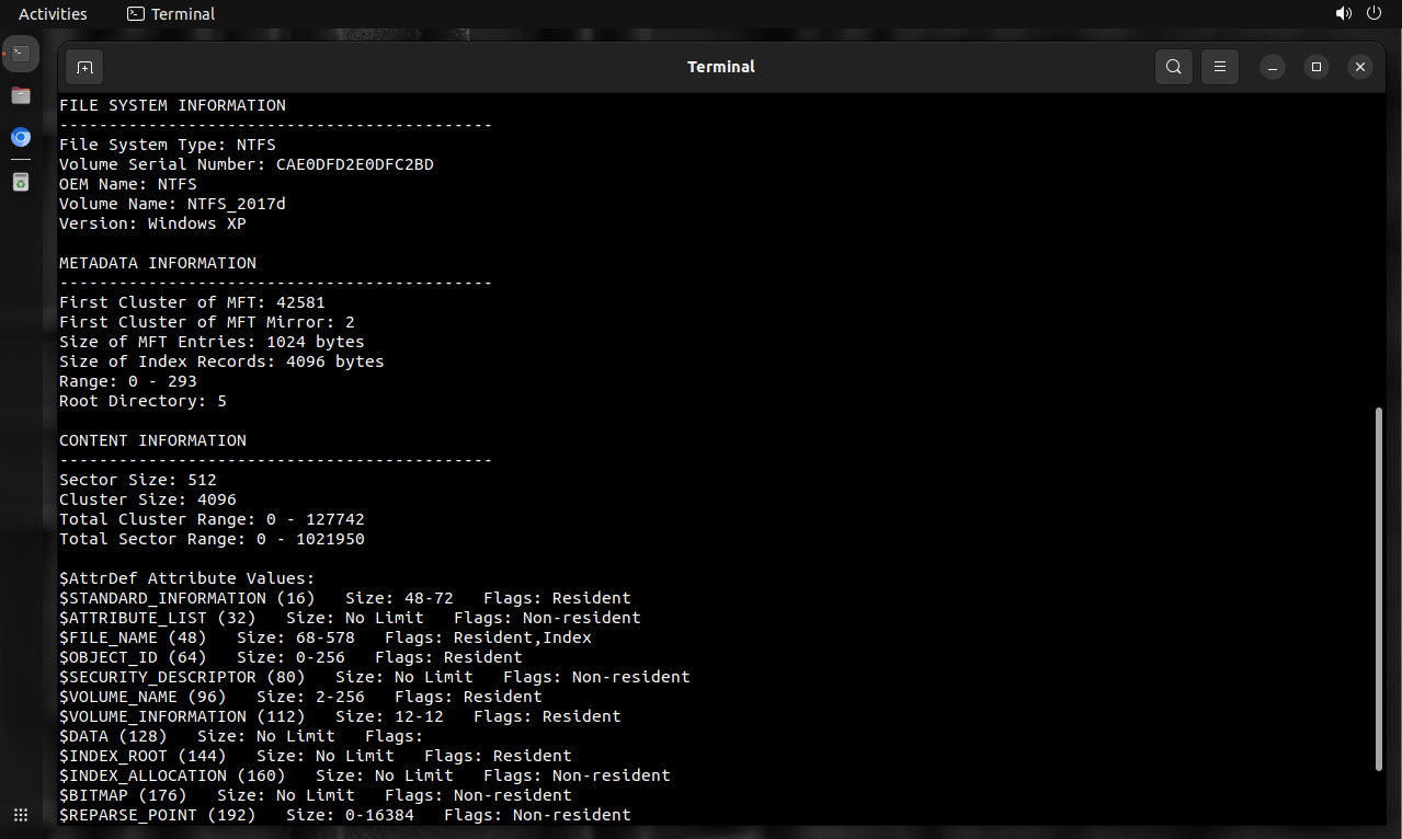 $ icat -o 2048 NTFS_Pract_2017.raw 228