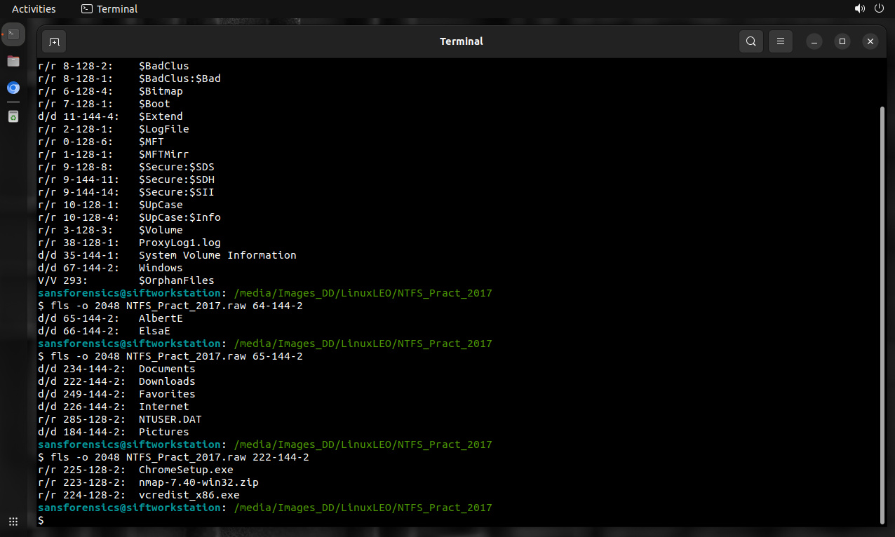 $ fls -o 2048 NTFS_Pract_2017.raw 222-144-2