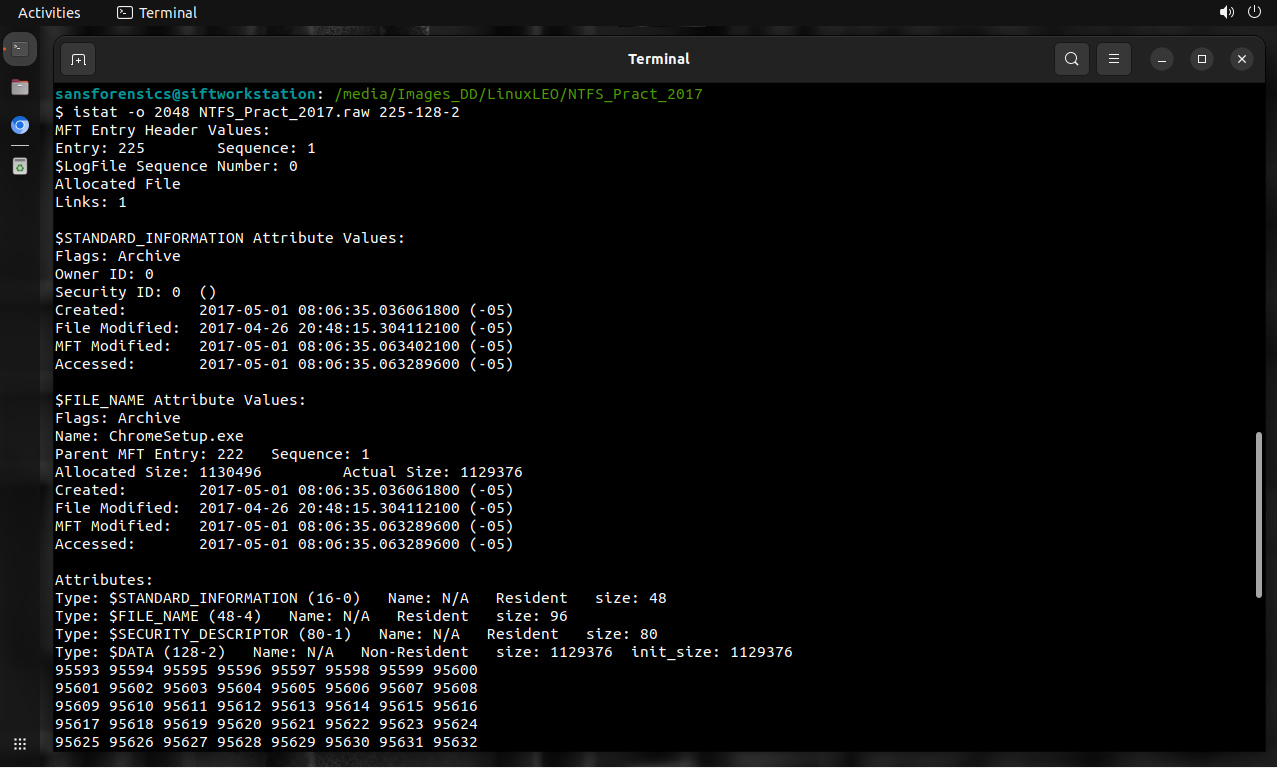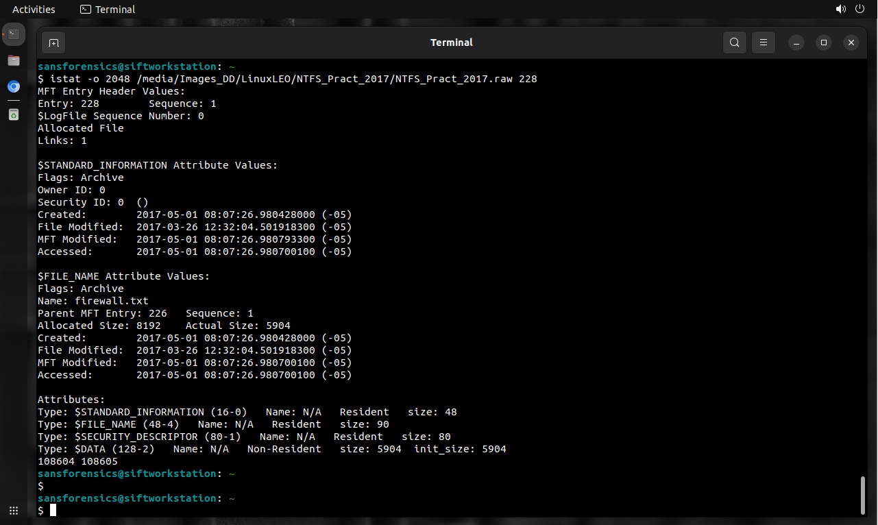 $ istat -o 2048 NTFS_Pract_2017.raw 228-128-2