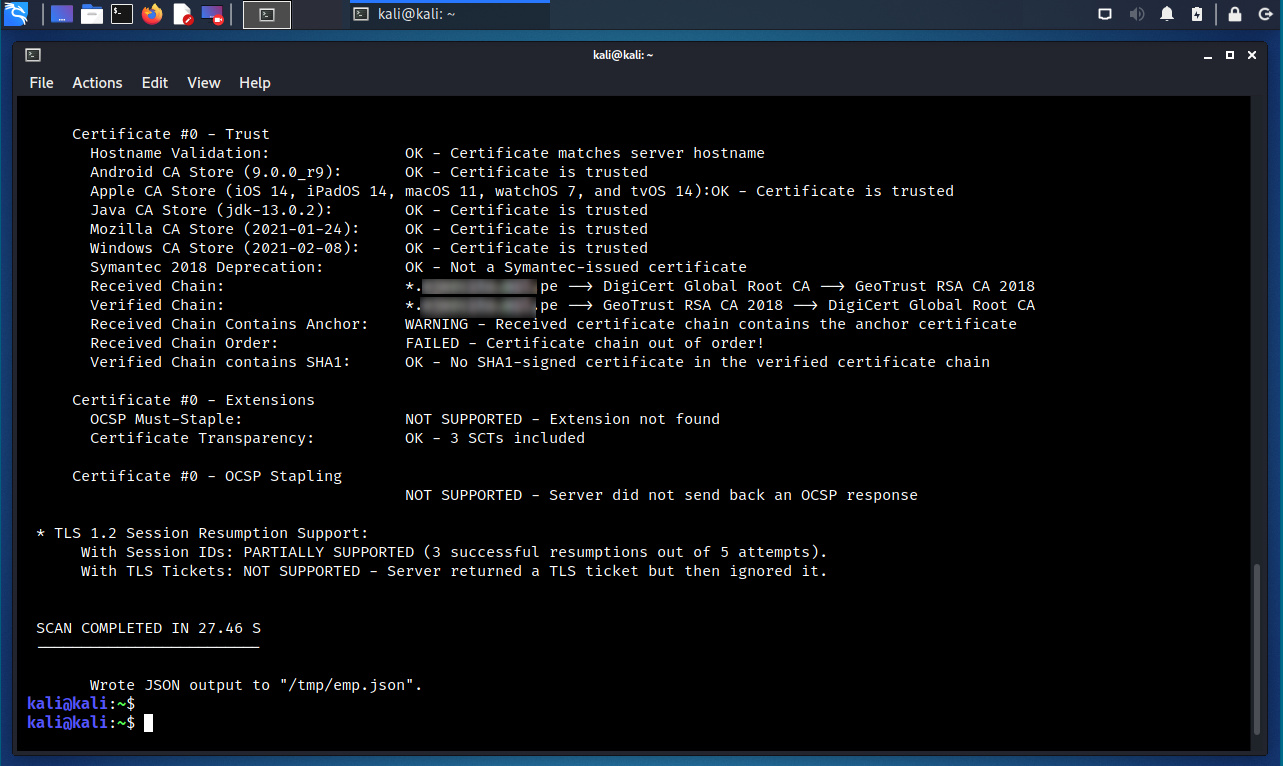 $ sslyze –resume www. xyz. pe --json_out=/tmp/emp.json