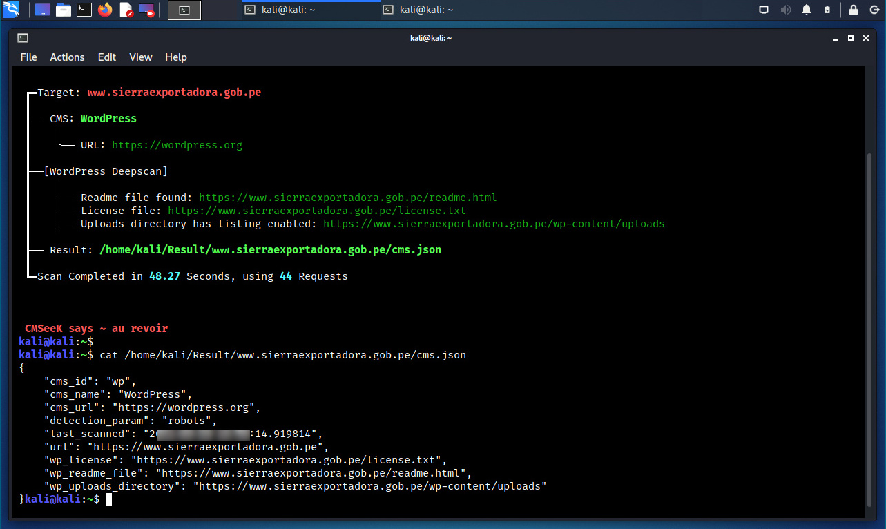 $ cmseek -u https:// www. si****.gob.pe --random-agent