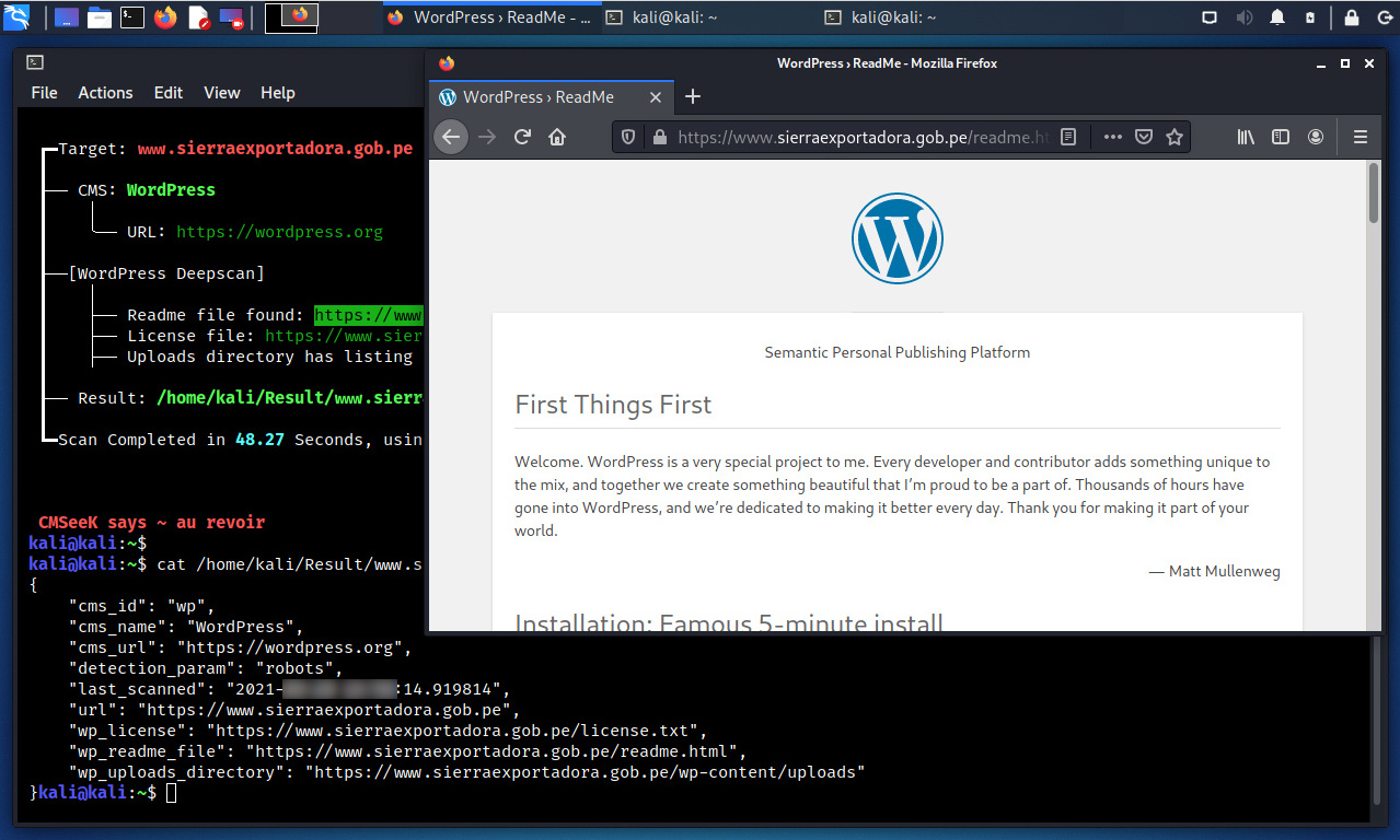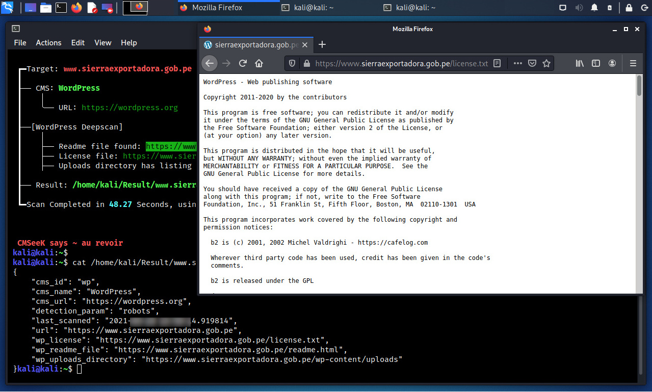 Todos los archivos y directorios encontrados utilizando la herramienta CMSeek deben ser verificados manualmente por un profesional. La información contenida en estos archivos y directorios puede proporcionar información útil para potencialmente identificar vulnerabilidades, las cuales permitan explotar el sitio web.