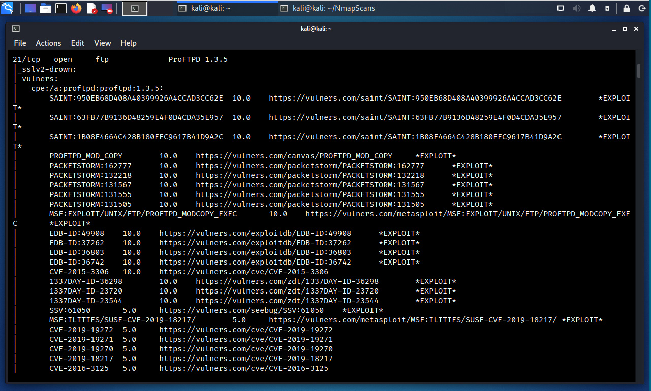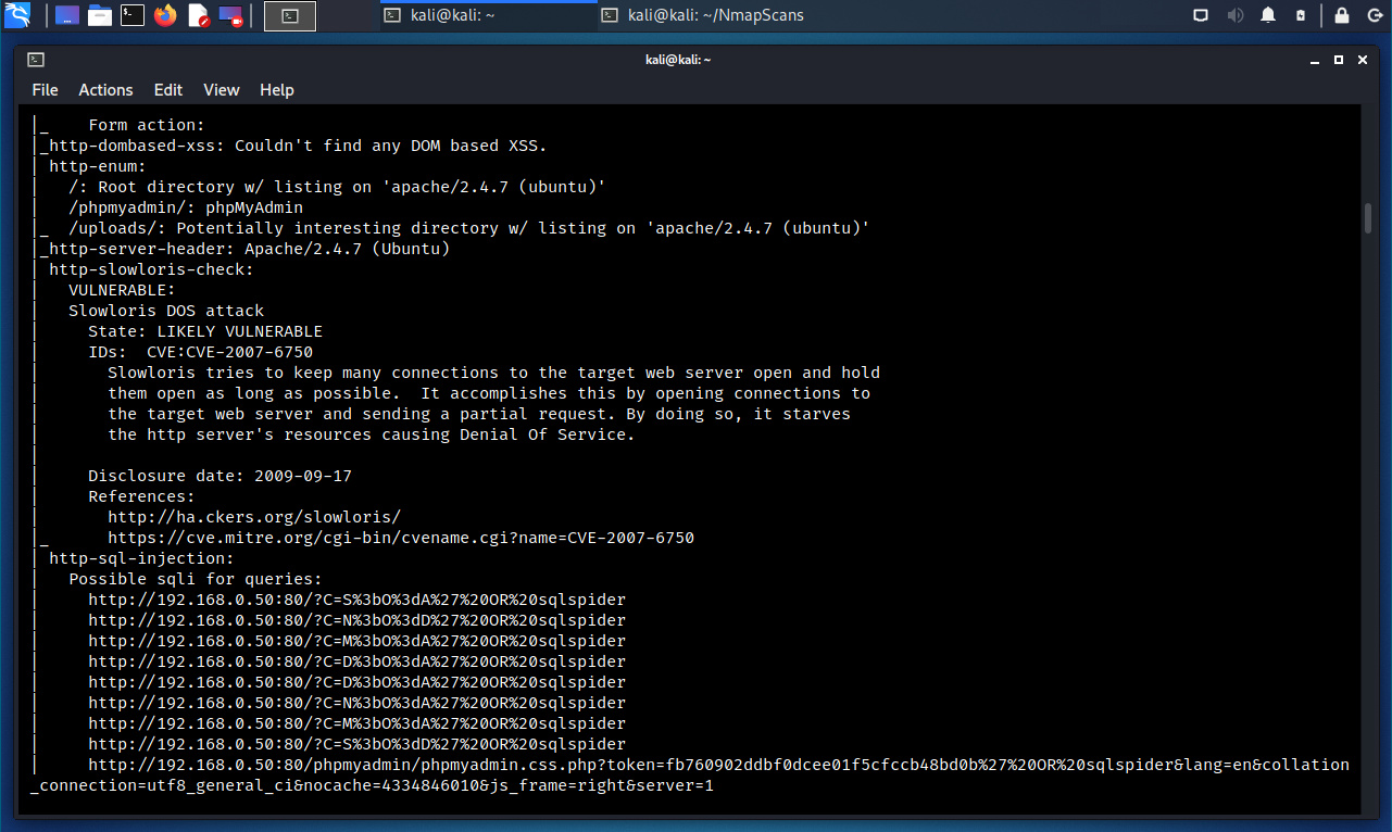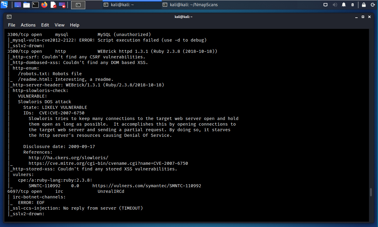 La opción “--script vuln” define la ejecución de todos los guiones NSE incluidos en esta categoría.